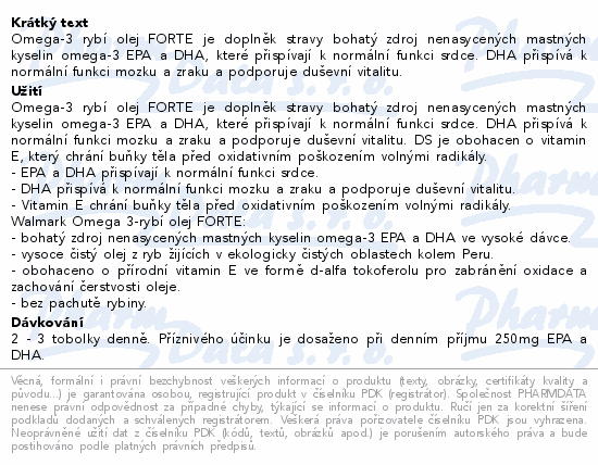 Omega-3 rybí olej FORTE je doplněk stravy bohatý zdroj nenasycených mastných kyselin omega-3 EPA a DHA, které přispívají k normální funkci srdce. DHA přispívá k normální funkci mozku a zraku a podporuje duševní vitalitu.