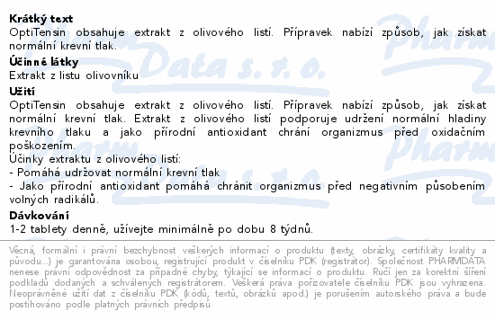 OptiTensin® je kvalitní prémiový produkt na přírodní bázi obsahující extrakt z olivového listí standardizovaný na oleuropein.