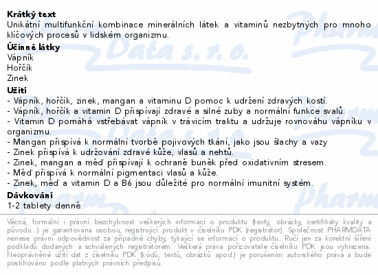 Unikátní multifunkční kombinace minerálních látek a vitaminů nezbytných pro mnoho klíčových procesů v lidském organizmu.