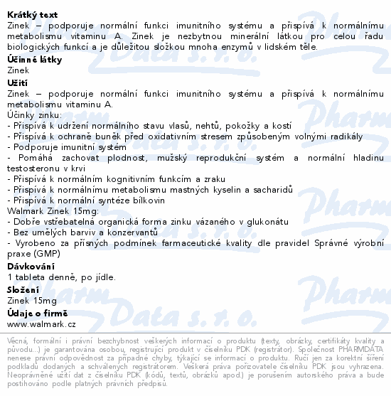 Zinek – podporuje normální funkci imunitního systému a přispívá k normálnímu metabolismu vitaminu A. Zinek je nezbytnou minerální látkou pro celou řadu biologických funkcí a je důležitou složkou mnoha enzymů v lidském těle.