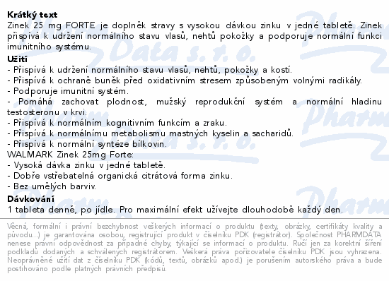 Zinek 25 mg FORTE je doplněk stravy s vysokou dávkou zinku v jedné tabletě. Zinek přispívá k udržení normálního stavu vlasů, nehtů pokožky a podporuje normální funkci imunitního systému.