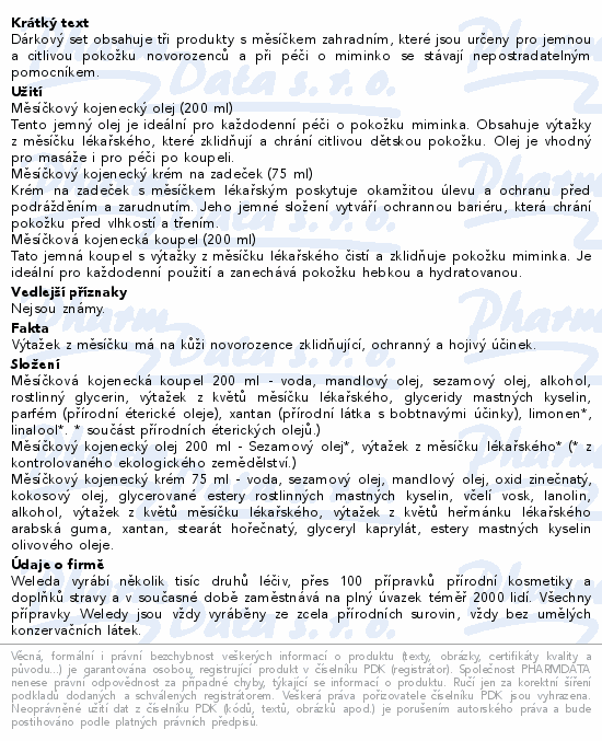 Dárkový set obsahuje tři produkty s měsíčkem zahradním, které jsou určeny pro jemnou a citlivou pokožku novorozenců a při péči o miminko se stávají nepostradatelným pomocníkem.