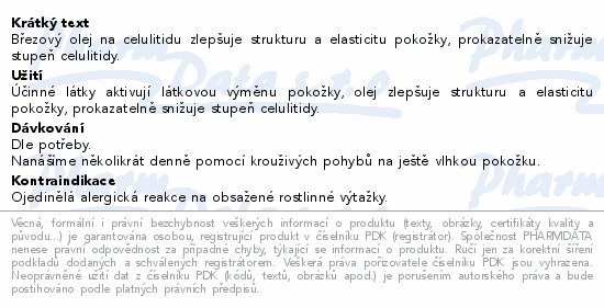 Březový olej na celulitidu zlepšuje strukturu a elasticitu pokožky, prokazatelně snižuje stupeň celulitidy.