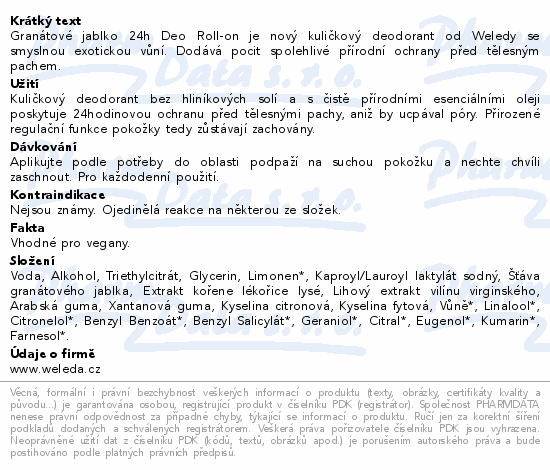 Granátové jablko 24h Deo Roll-on je nový kuličkový deodorant od Weledy se smyslnou exotickou vůní. Dodává pocit spolehlivé přírodní ochrany před tělesným pachem.