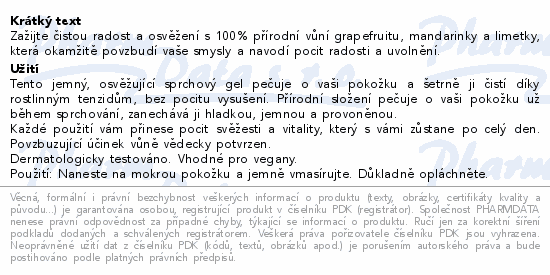 Zažijte čistou radost a osvěžení s 100% přírodní vůní grapefruitu, mandarinky a limetky, která okamžitě povzbudí vaše smysly a navodí pocit radosti a uvolnění.