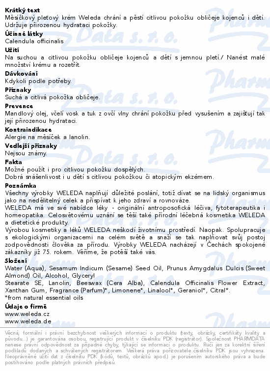 Měsíčkový pleťový krém Weleda chrání a pěstí citlivou pokožku obličeje kojenců i dětí. Udržuje přirozenou hydrataci pokožky.