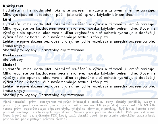 Hydratační mlha dodá pleti okamžité osvěžení a výživu a zároveň ji jemně tonizuje. Mlhu využijete při každodenní péči i jako svěží spršku kdykoliv během dne.