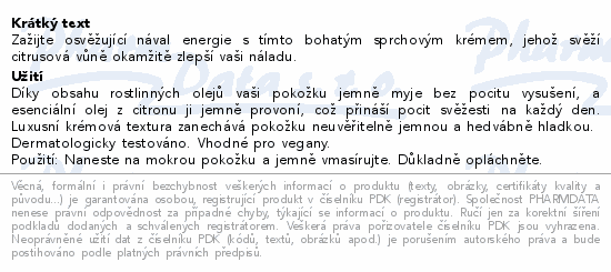 Zažijte osvěžující nával energie s tímto bohatým sprchovým krémem, jehož svěží citrusová vůně okamžitě zlepší vaši náladu.