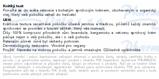 Ponořte se do světa relaxace s bohatým sprchovým krémem, obohaceným o organický olej, který vaši pokožku zahalí do hedvábí.