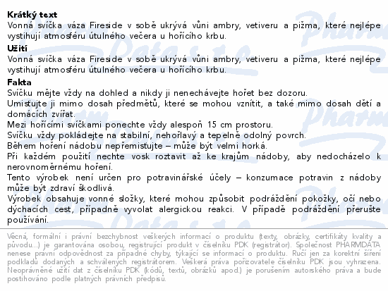 Vonná svíčka váza Fireside v sobě ukrývá vůni ambry, vetiveru a pižma, které nejlépe vystihují atmosféru útulného večera u hořícího krbu.