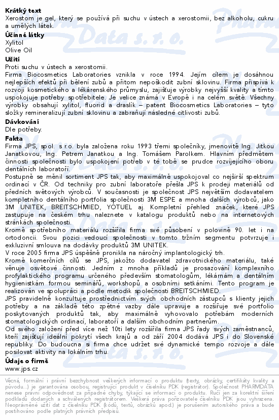 Xerostom je gel, který se používá při suchu v ústech a xerostomii, bez alkoholu, cukru a umělých látek.