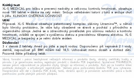 XL-S MEDICAL pro léčbu a prevenci nadváhy a celkovou kontrolu hmotnosti, obsahuje nově 180 tablet = dávka na celý měsíc. Snižuje vstřebávání kalorií z tuků a snižuje chuť k jídlu. KLINICKY OVĚŘENÁ ÚČINNOST.