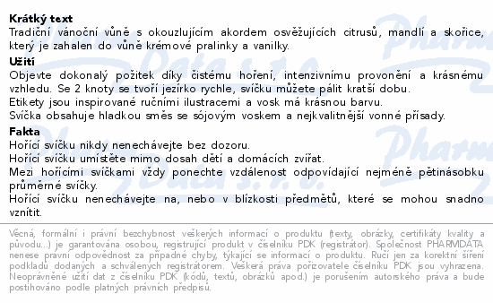 Tradiční vánoční vůně s okouzlujícím akordem osvěžujících citrusů, mandlí a skořice, který je zahalen do vůně krémové pralinky a vanilky.