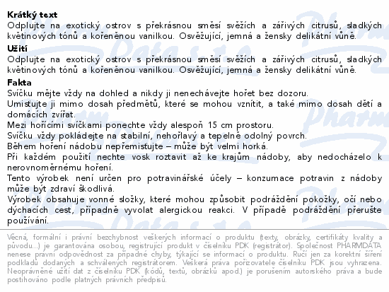 Odplujte na exotický ostrov s překrásnou směsí svěžích a zářivých citrusů, sladkých květinových tónů a kořeněnou vanilkou. Osvěžující, jemná a žensky delikátní vůně.