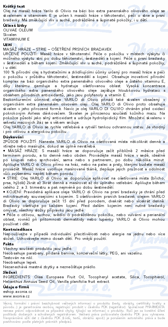 Yarilo di Olivio olej na masáž hráze 30ml