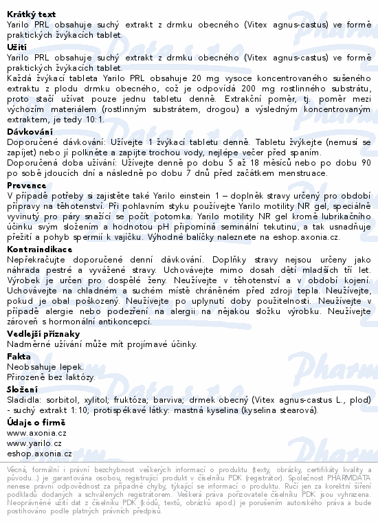 Yarilo PRL obsahuje suchý extrakt z drmku obecného (Vitex agnus-castus) ve formě praktických žvýkacích tablet.
