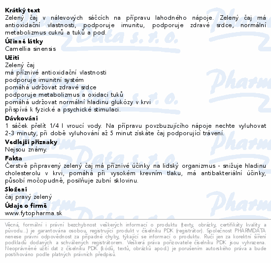 Zelený čaj 20x1.5g Fytopharma