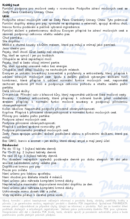 Zesty Paws Cranberry Urinary Care Chews 60ks