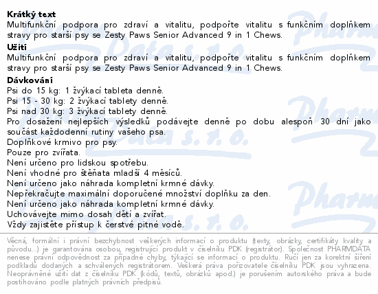 Zesty Paws Senior Advanced 9in1 Chews 60ks