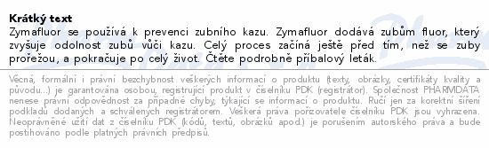 Zymafluor se používá k prevenci zubního kazu. Zymafluor dodává zubům fluor, který zvyšuje odolnost zubů vůči kazu. Celý proces začíná ještě před tím, než se zuby prořežou, a pokračuje po celý život. Čtěte pozorně příbalový leták.